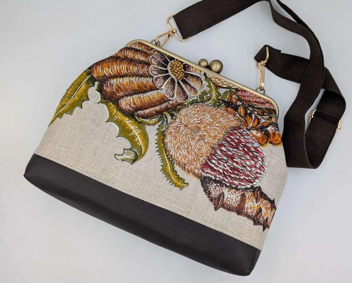 Handmade extra large handbag from beautiful vintage Australian Banksia linen