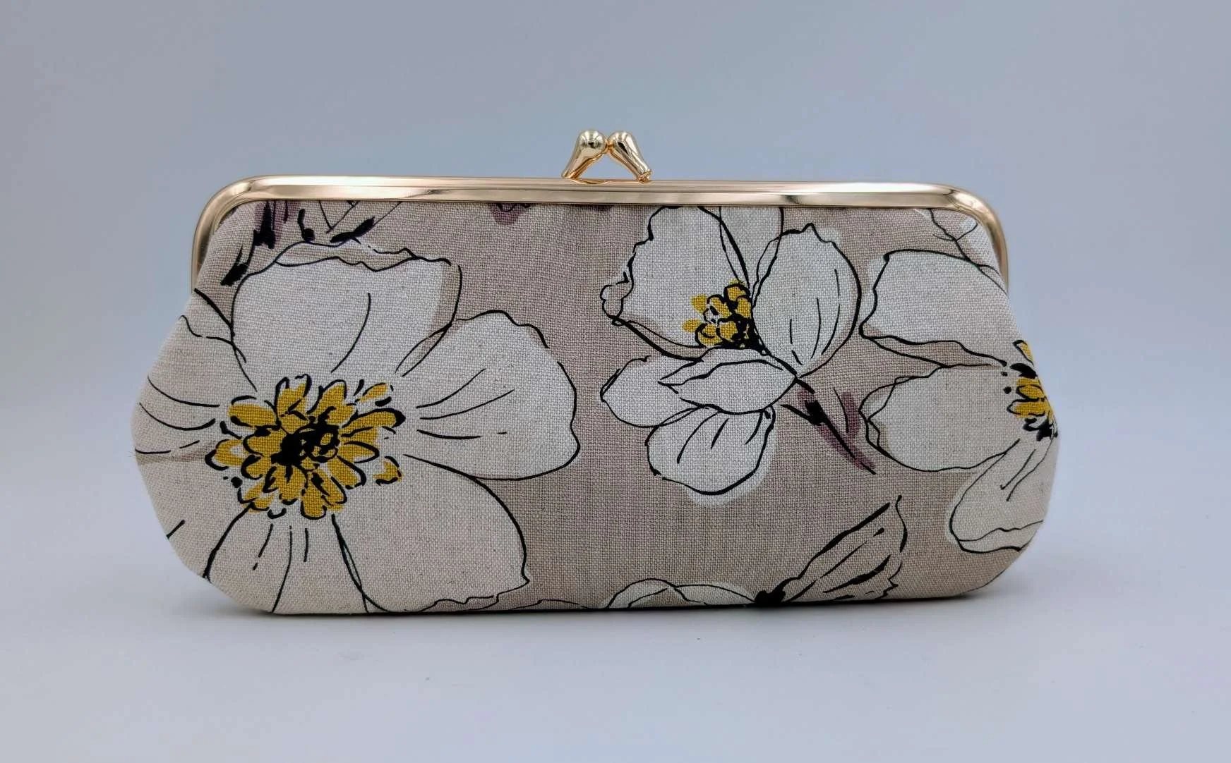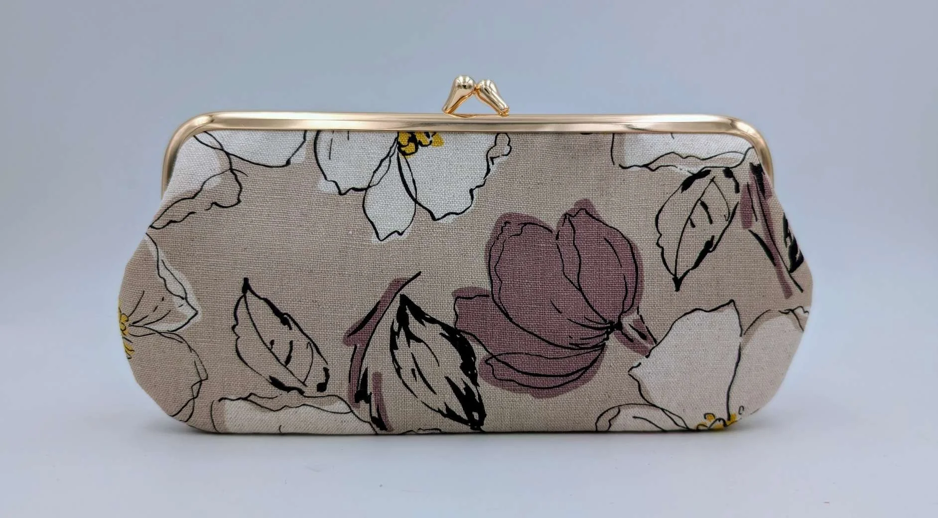 Handmade long purse from Japanese fabric featuring sketched magnolia flowers