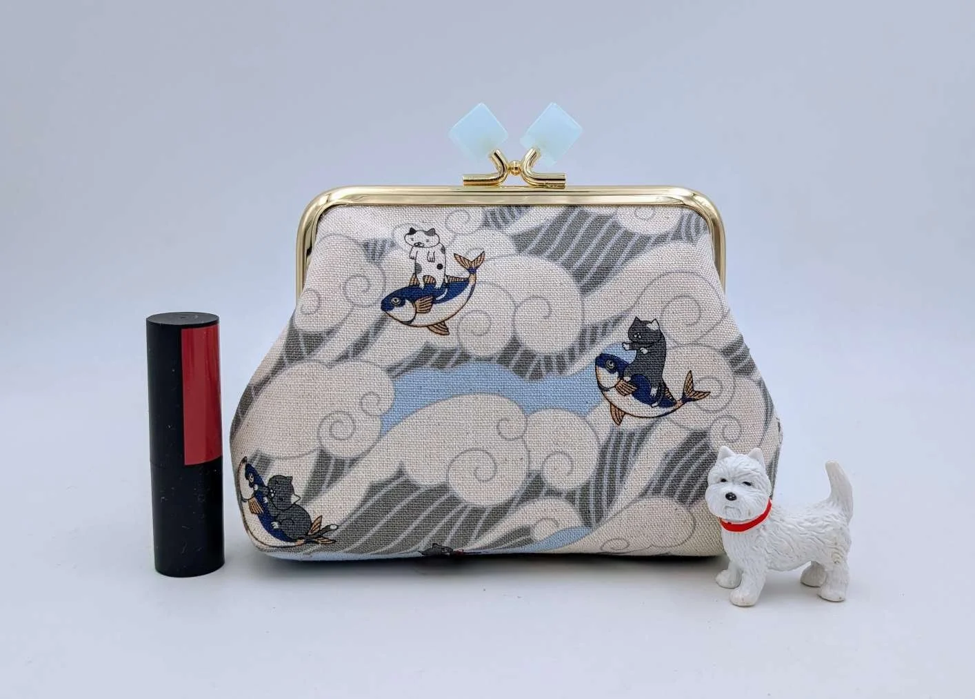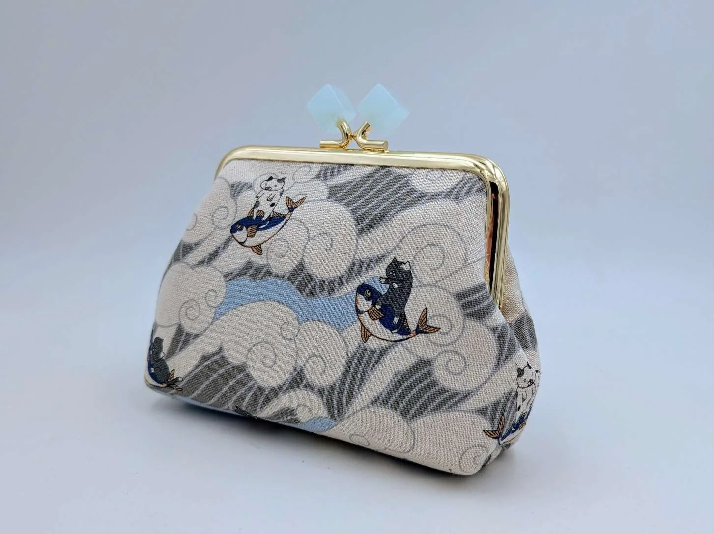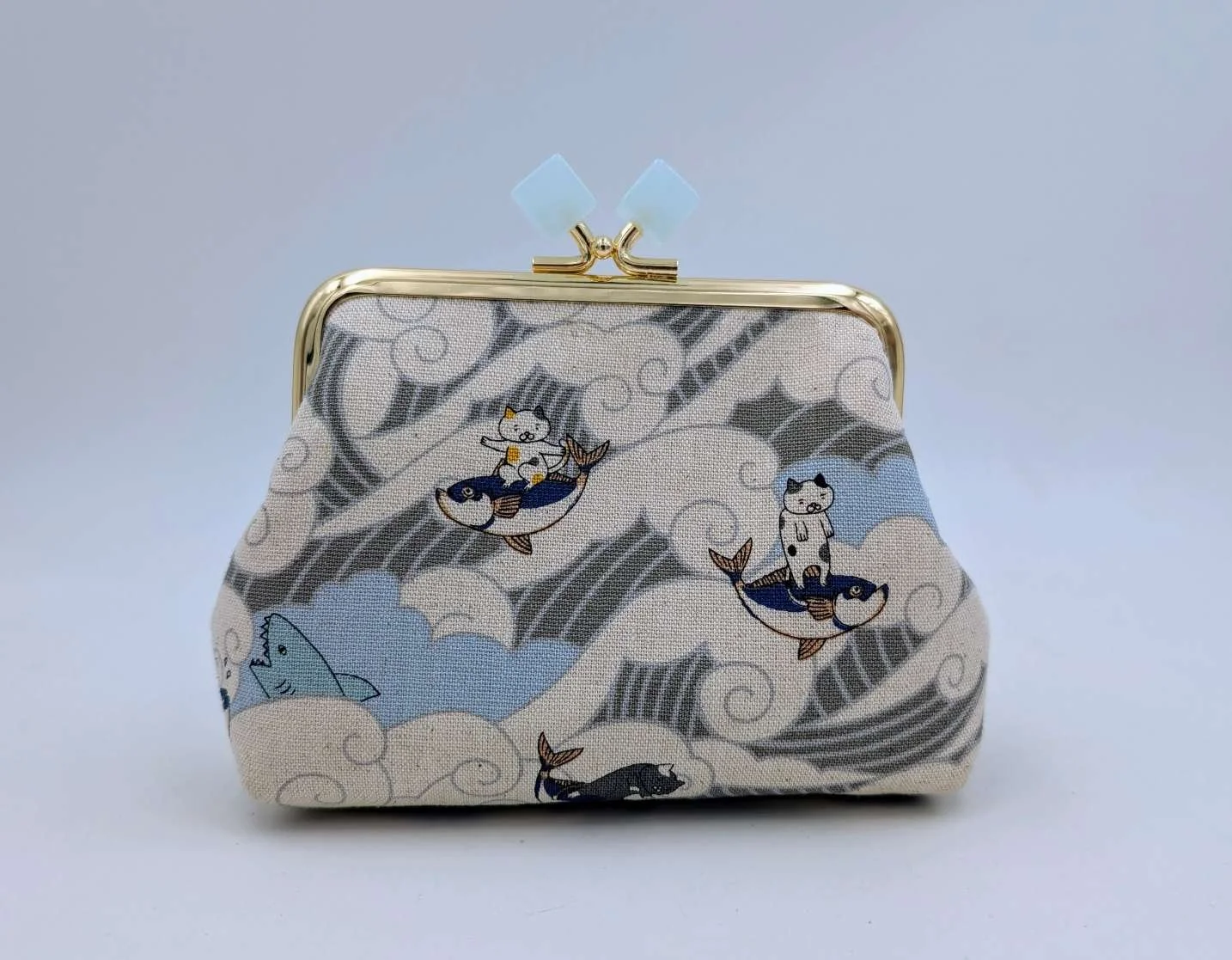 Handmade sweet little purse from Japanese fabric featuring surfing cats