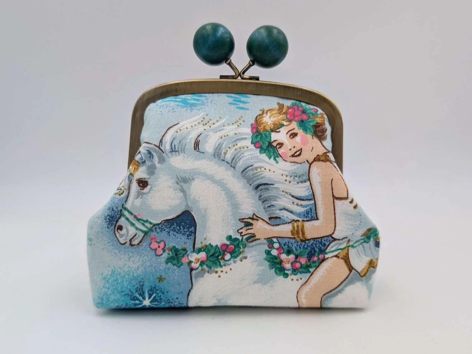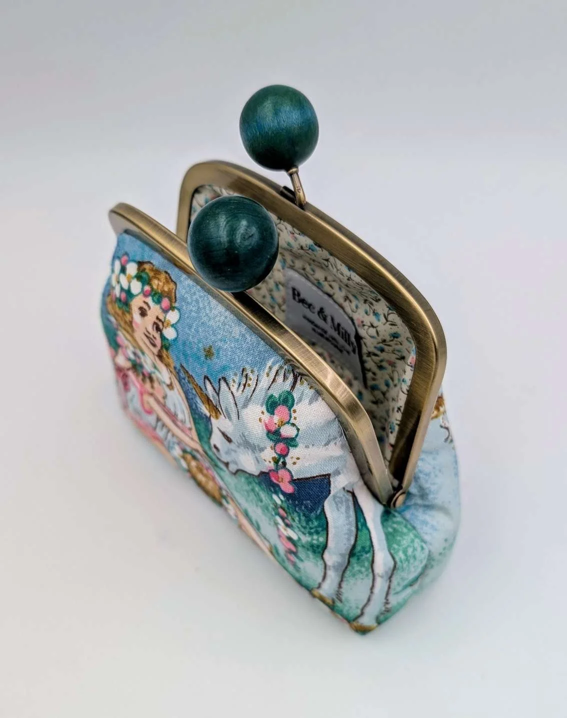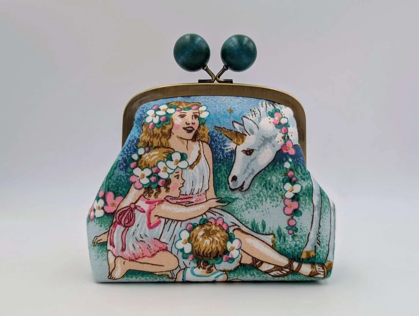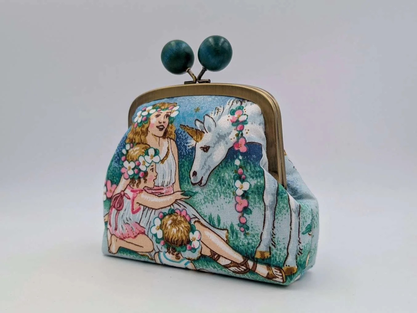 Handmade sweet medium purse from vintage Shirley Barbar fabric featuring unicorns and fairies