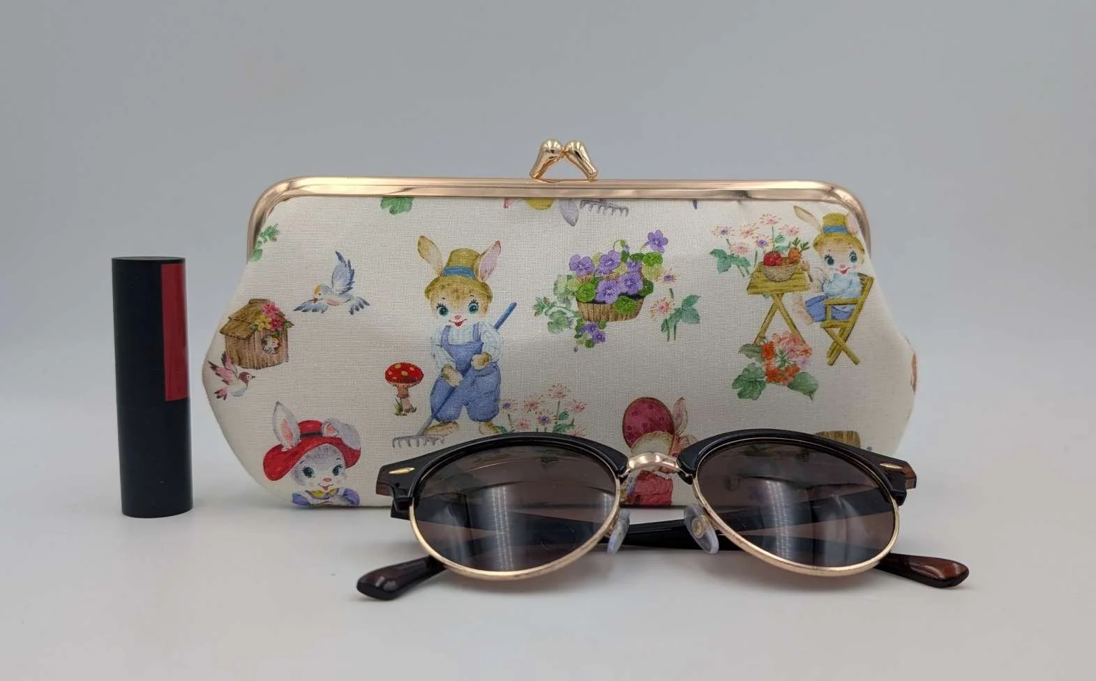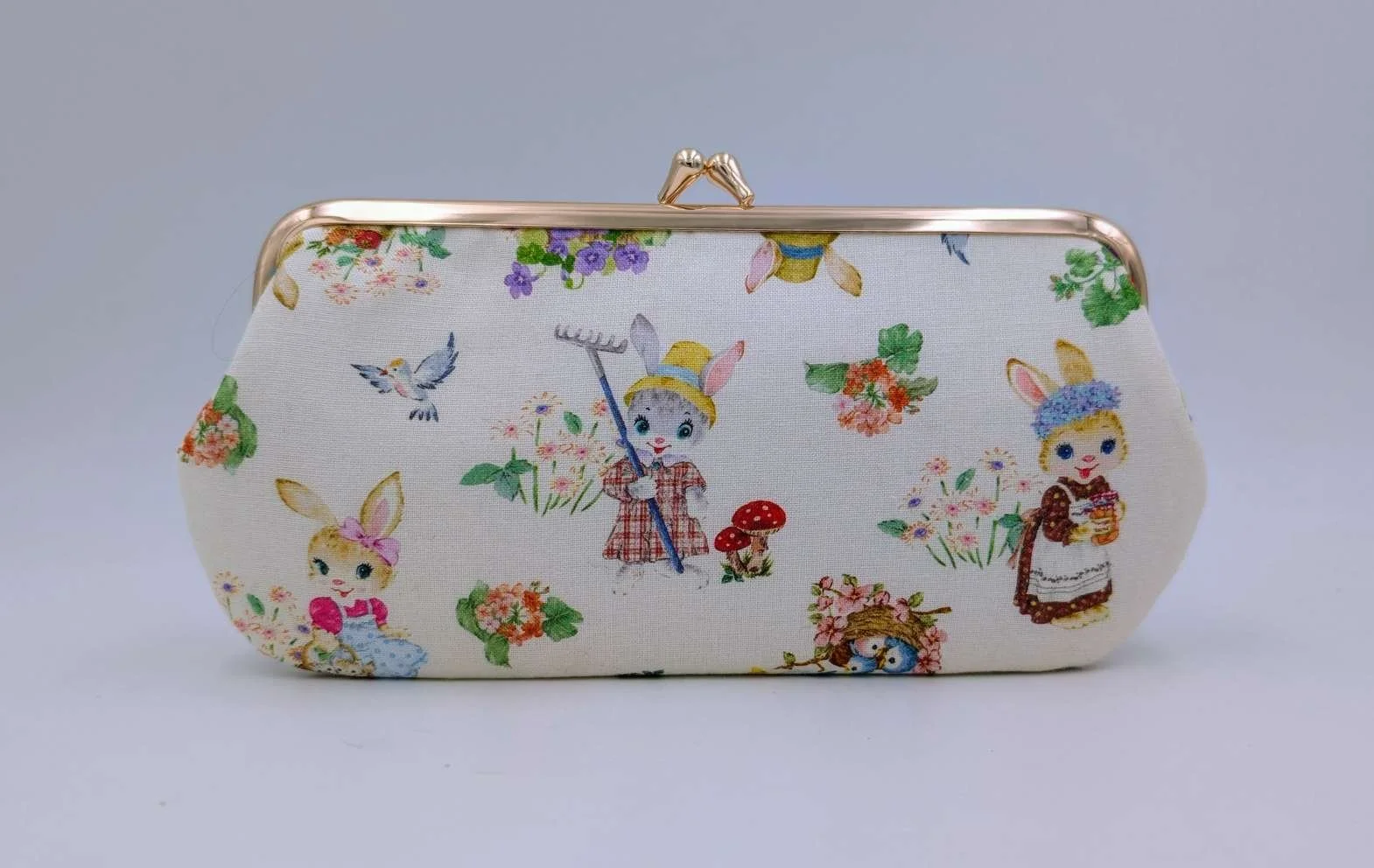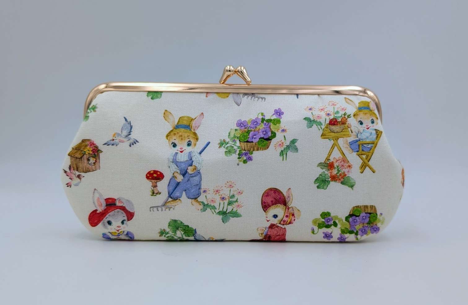Handmade long purse from Japanese cute gardening bunnies fabric