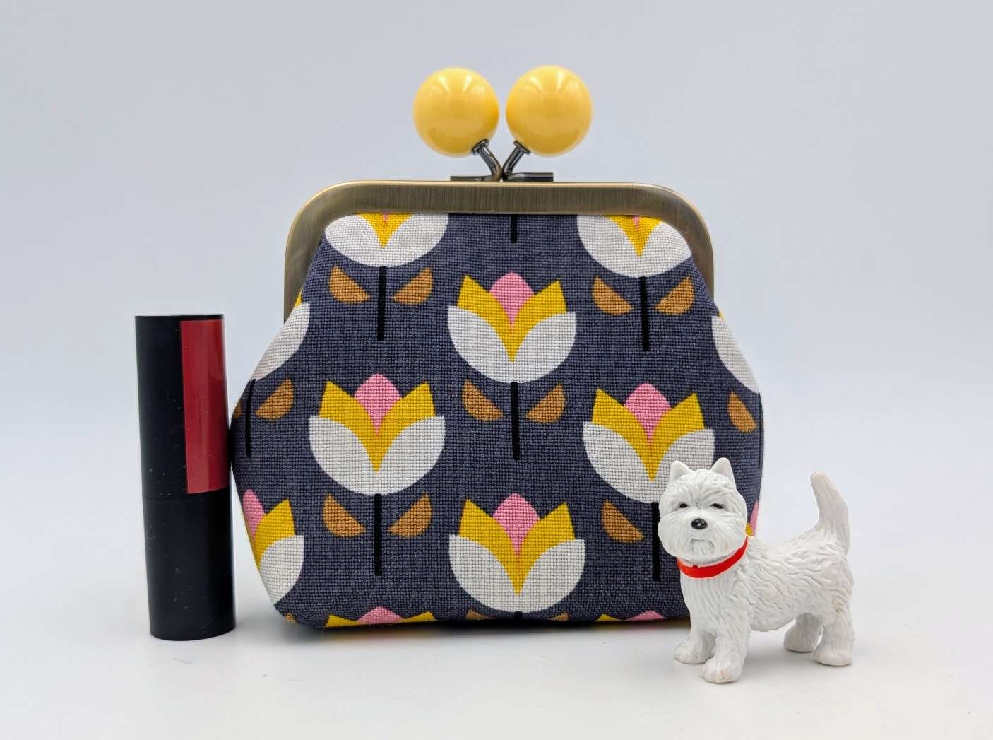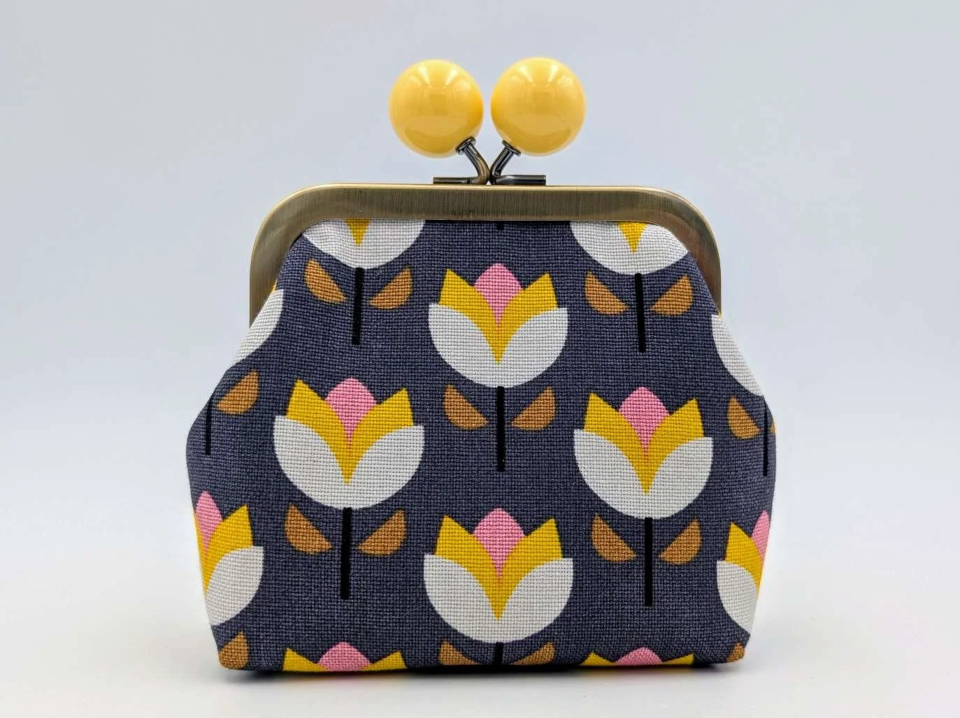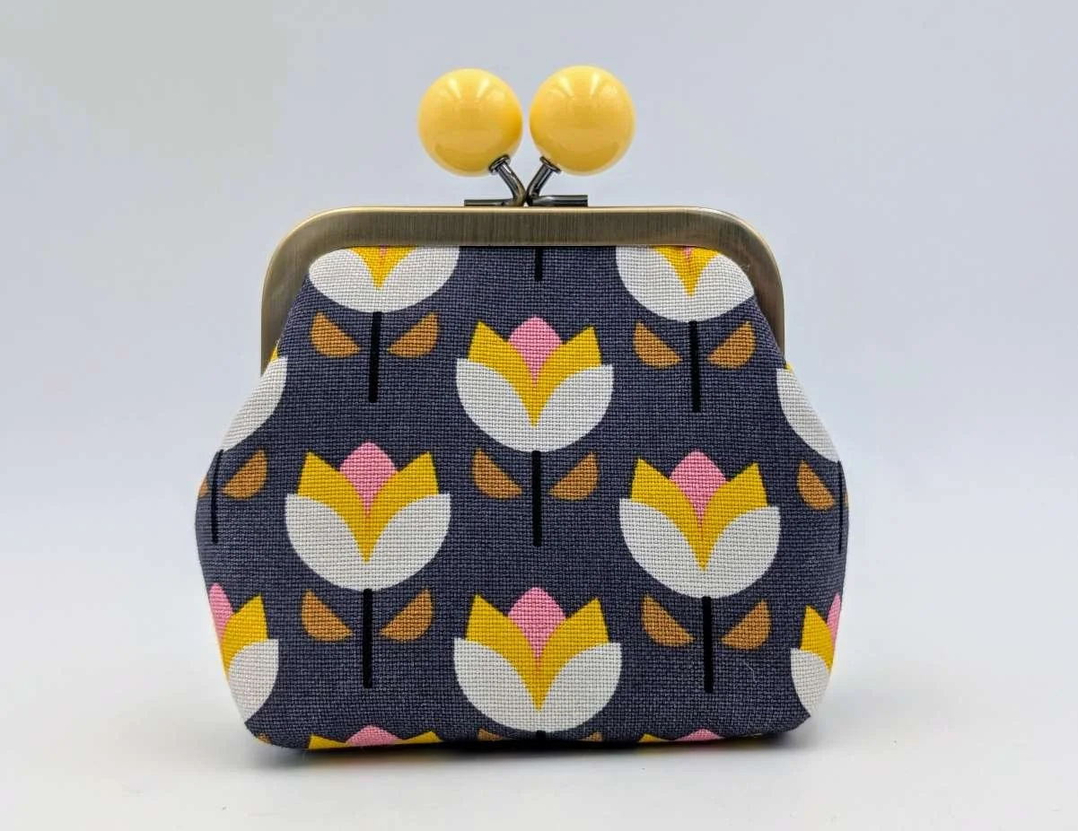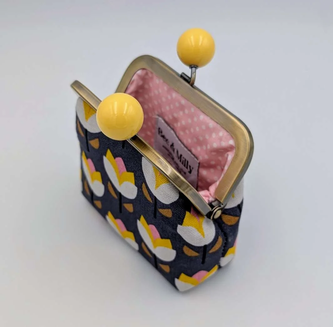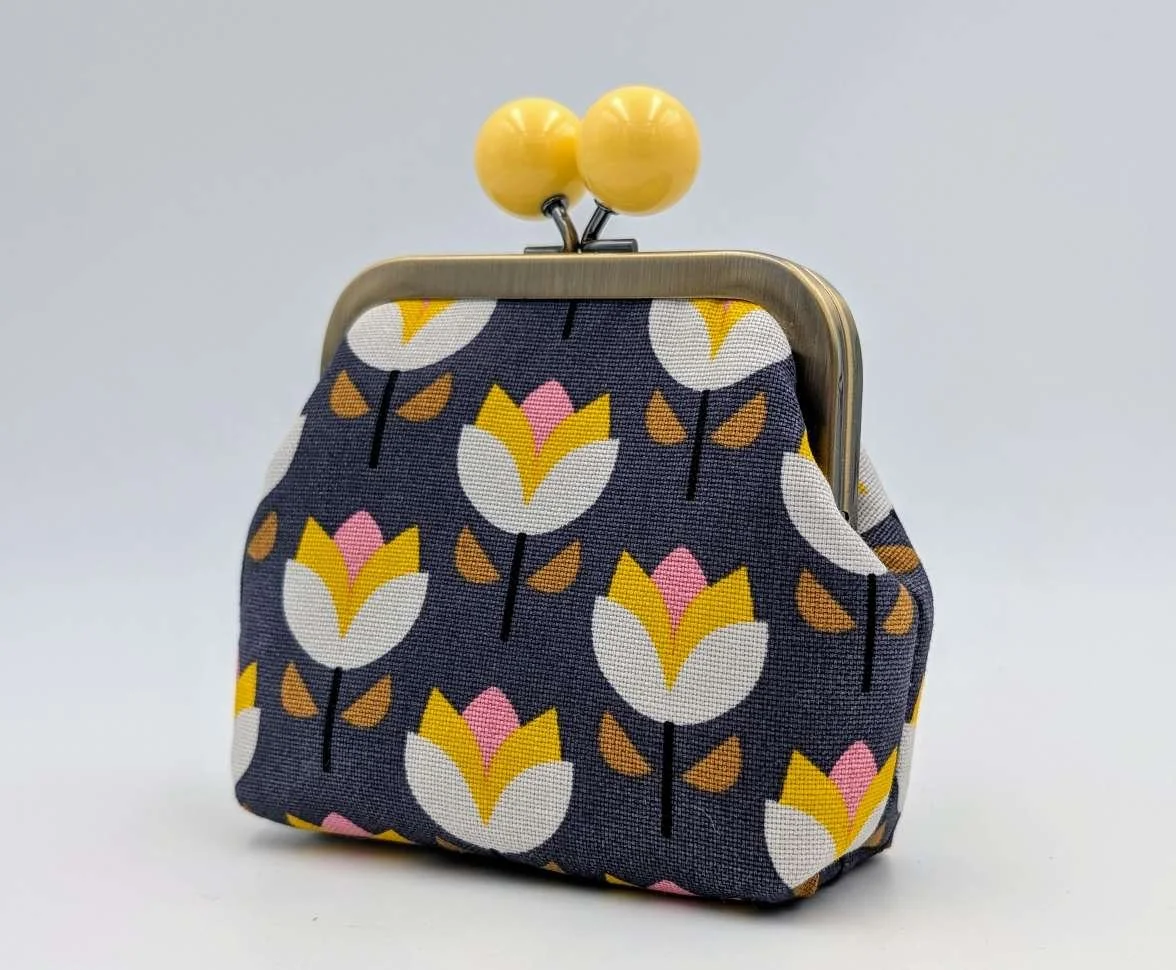 Finished with a kisslock frame with yellow bobbles
