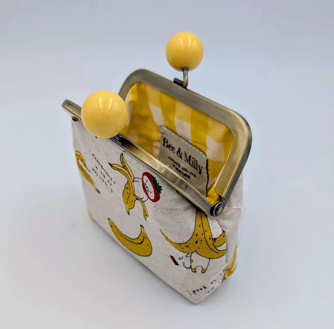 Finished with a kisslock frame with yellow bobbles