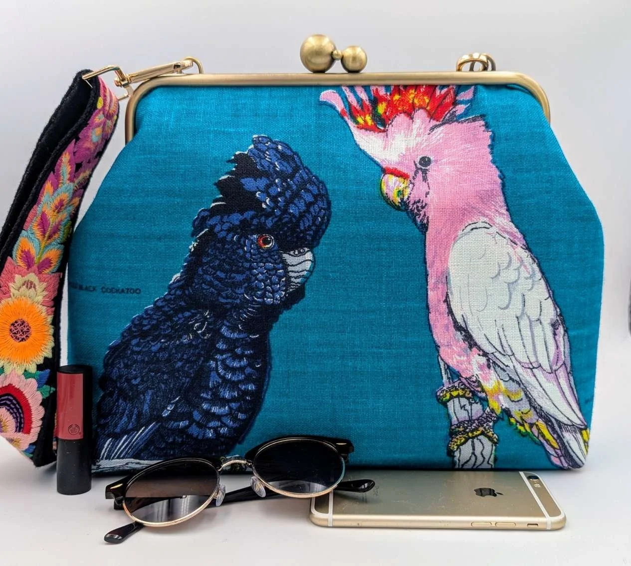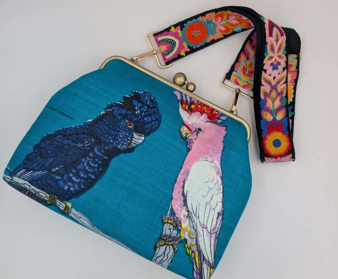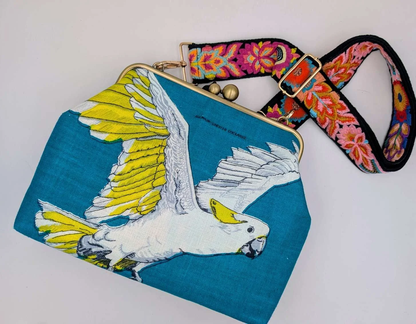 Handmade unique over the shoulder handbag from vintage Australian cockatoo linen