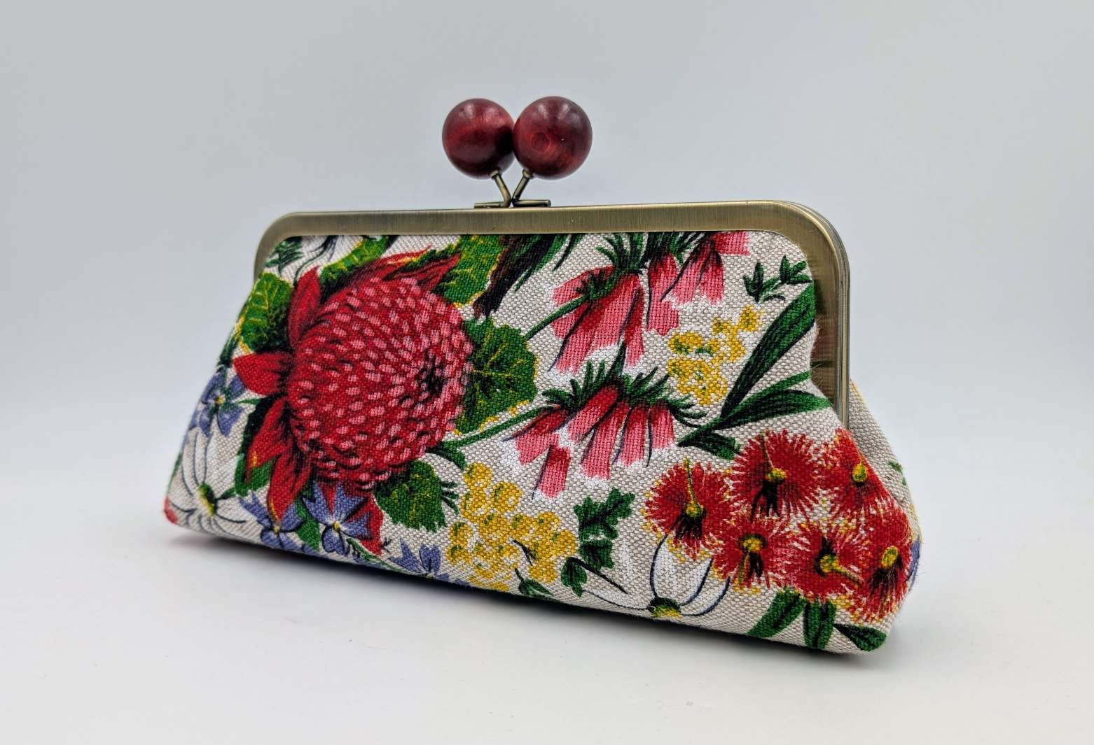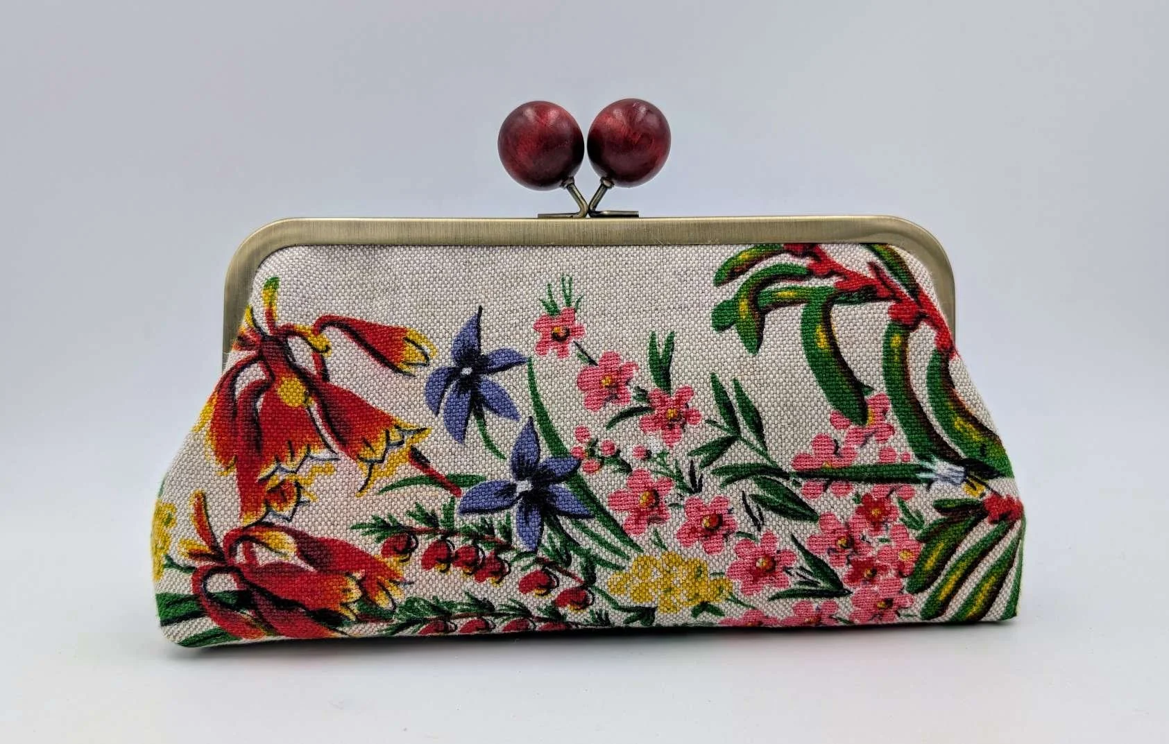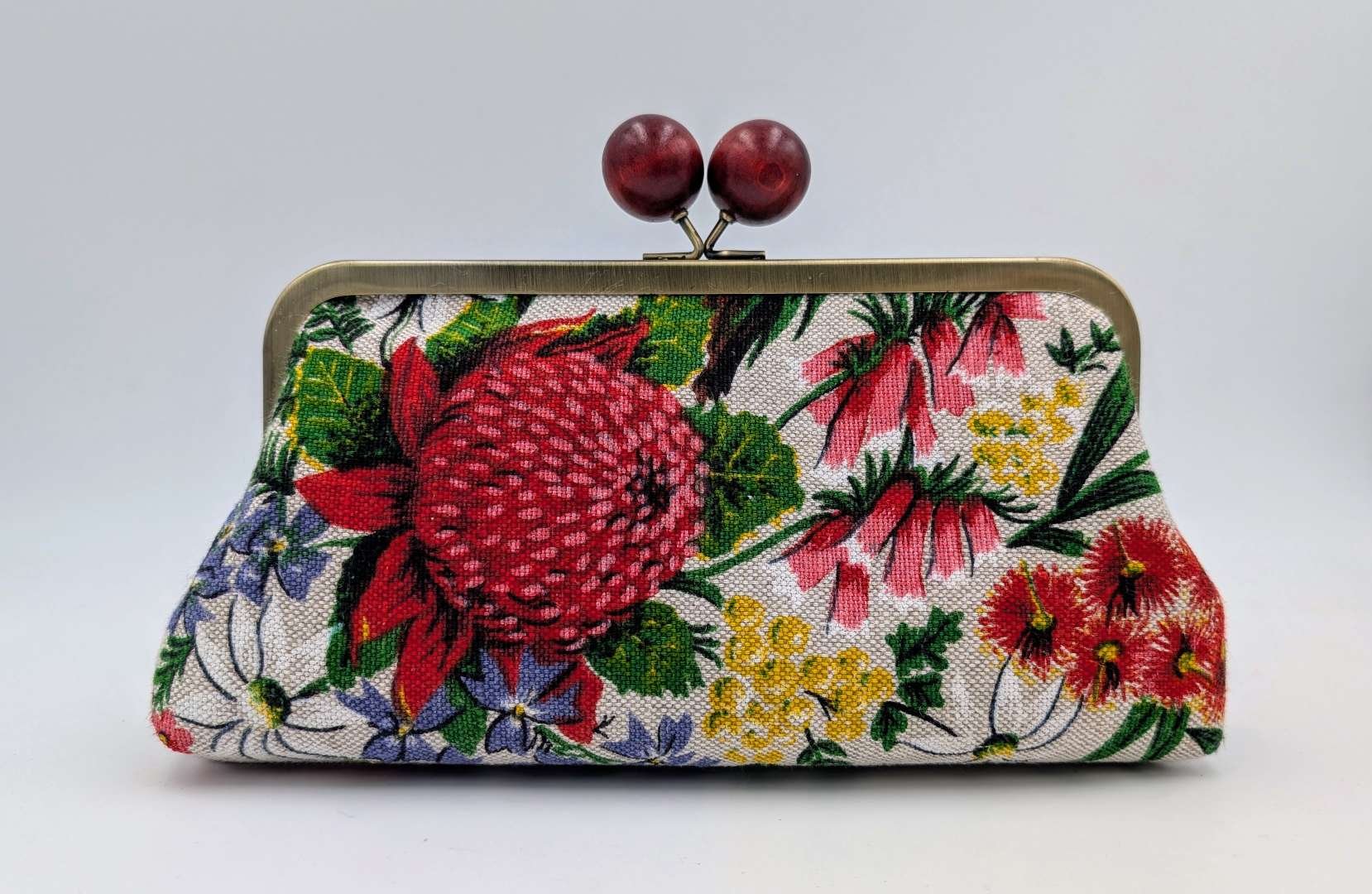 Handmade clutch or shoulder bag from vintage Australian wildflower linen